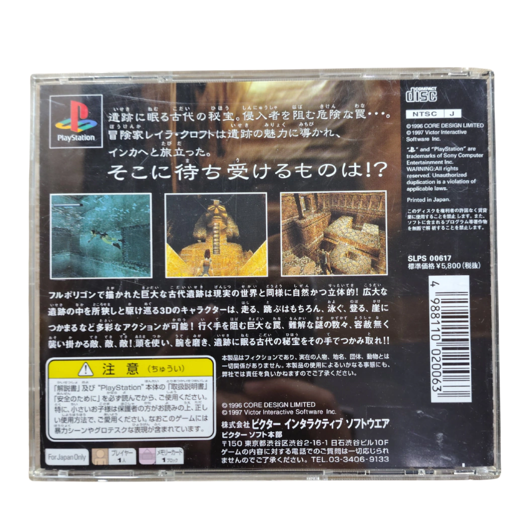 Tomb Raider é o início da lendária franquia estrelada por Lara Croft, trazendo exploração, quebra-cabeças e ação em ambientes 3D que marcaram a história dos videogames. Esta é a versão original japonesa (NTSC-J) para PlayStation 1, muito procurada por colecionadores e fãs da série.